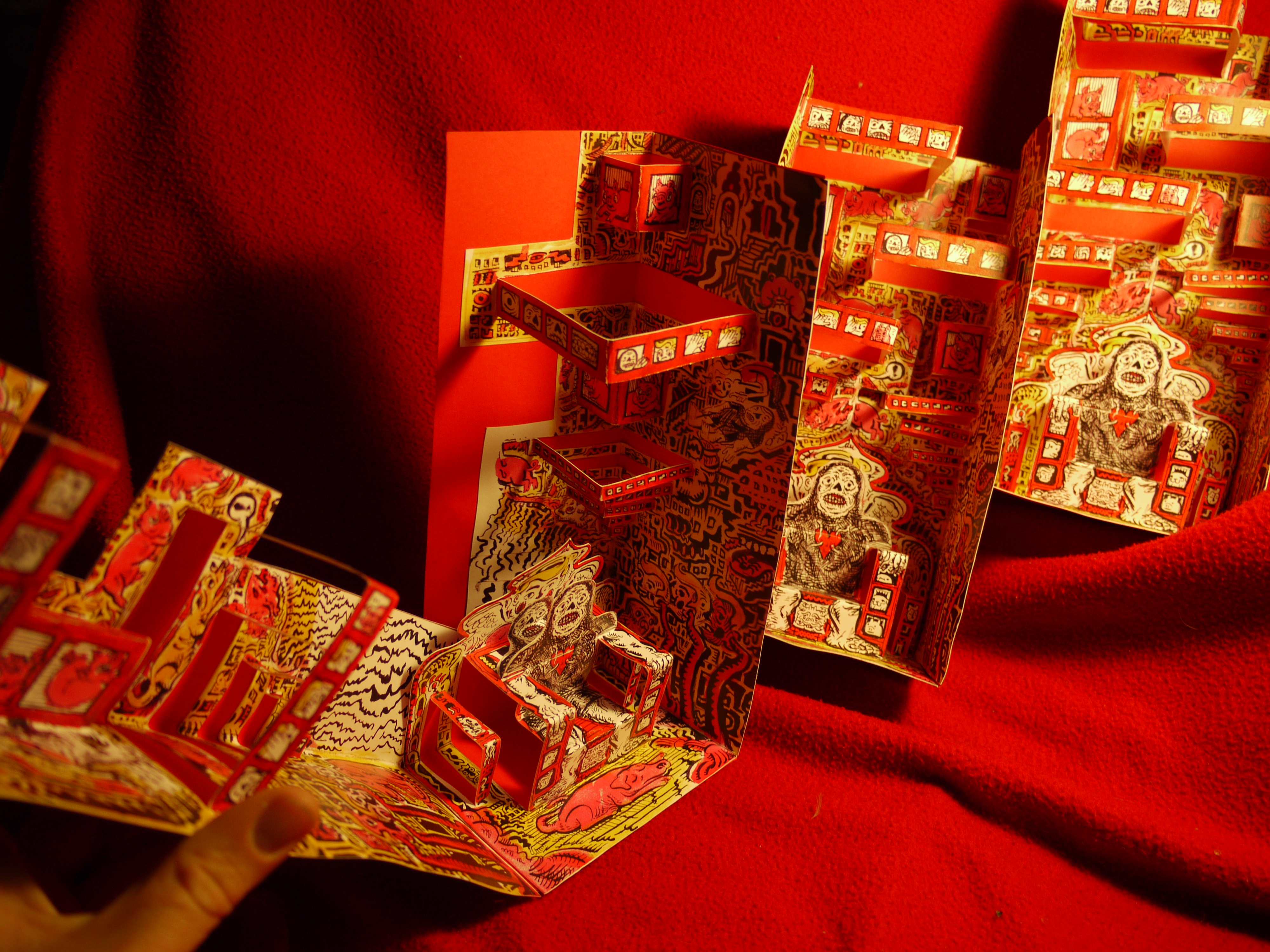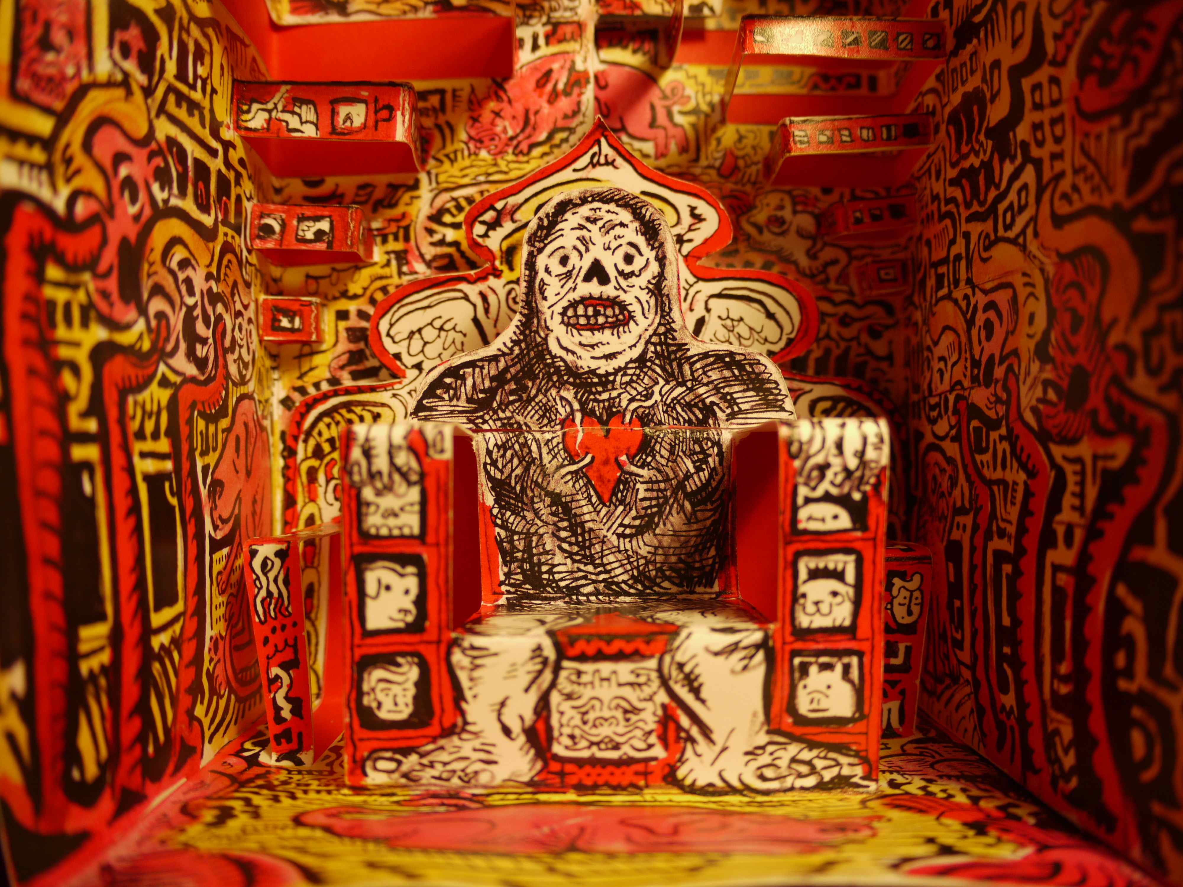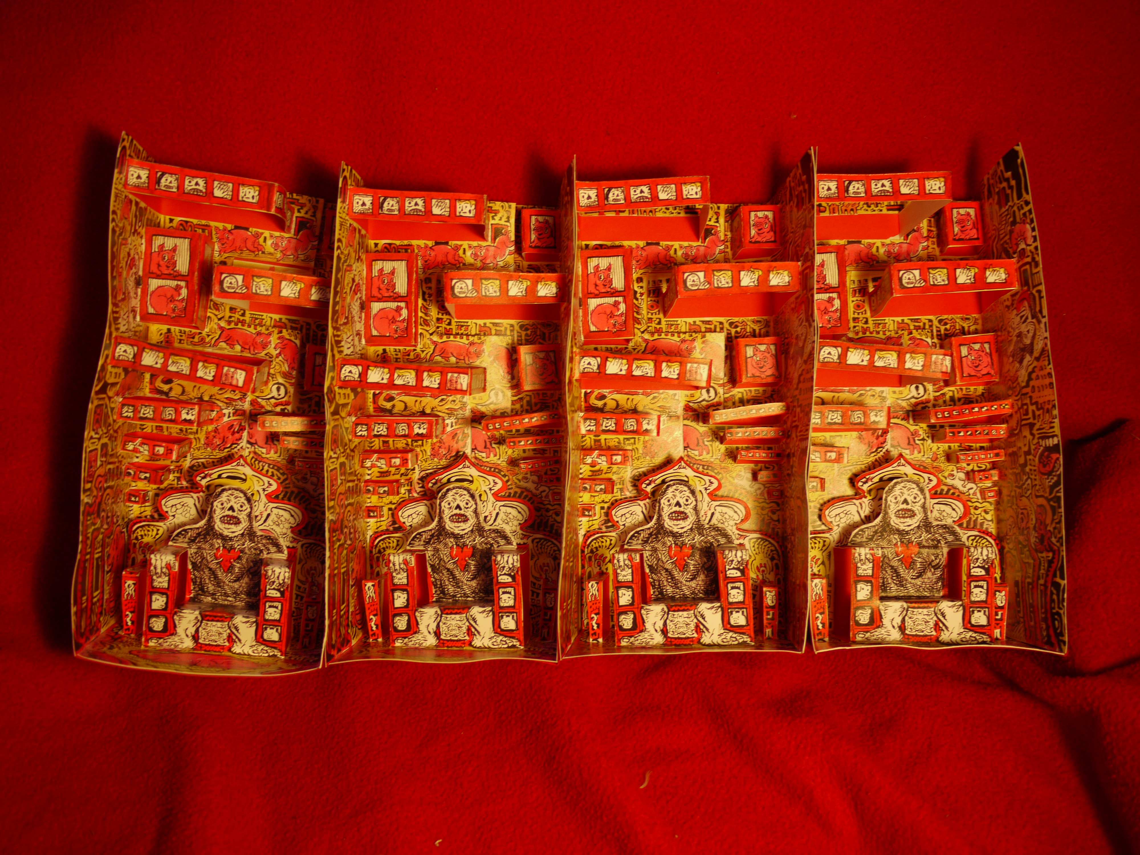 1:1 scale replica of the Ham'ron 2 Year Death Anniversary Memorial Shrine, originally created for the Happiness Comix show at Mailbox Art Space in Melbourne, Australia. 3D popup diorama folds completely flat and ships between two sturdy cardboards to make sure your shrine gets to you in mint condition.