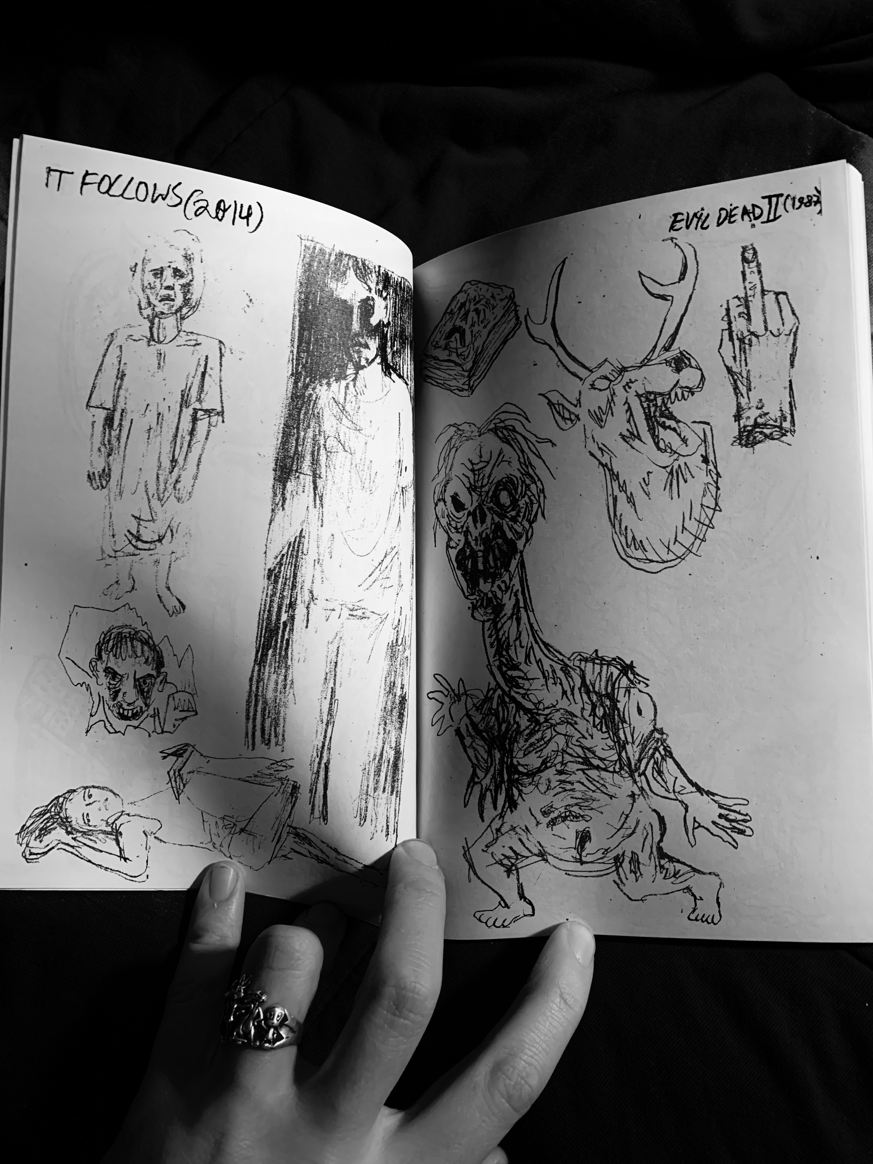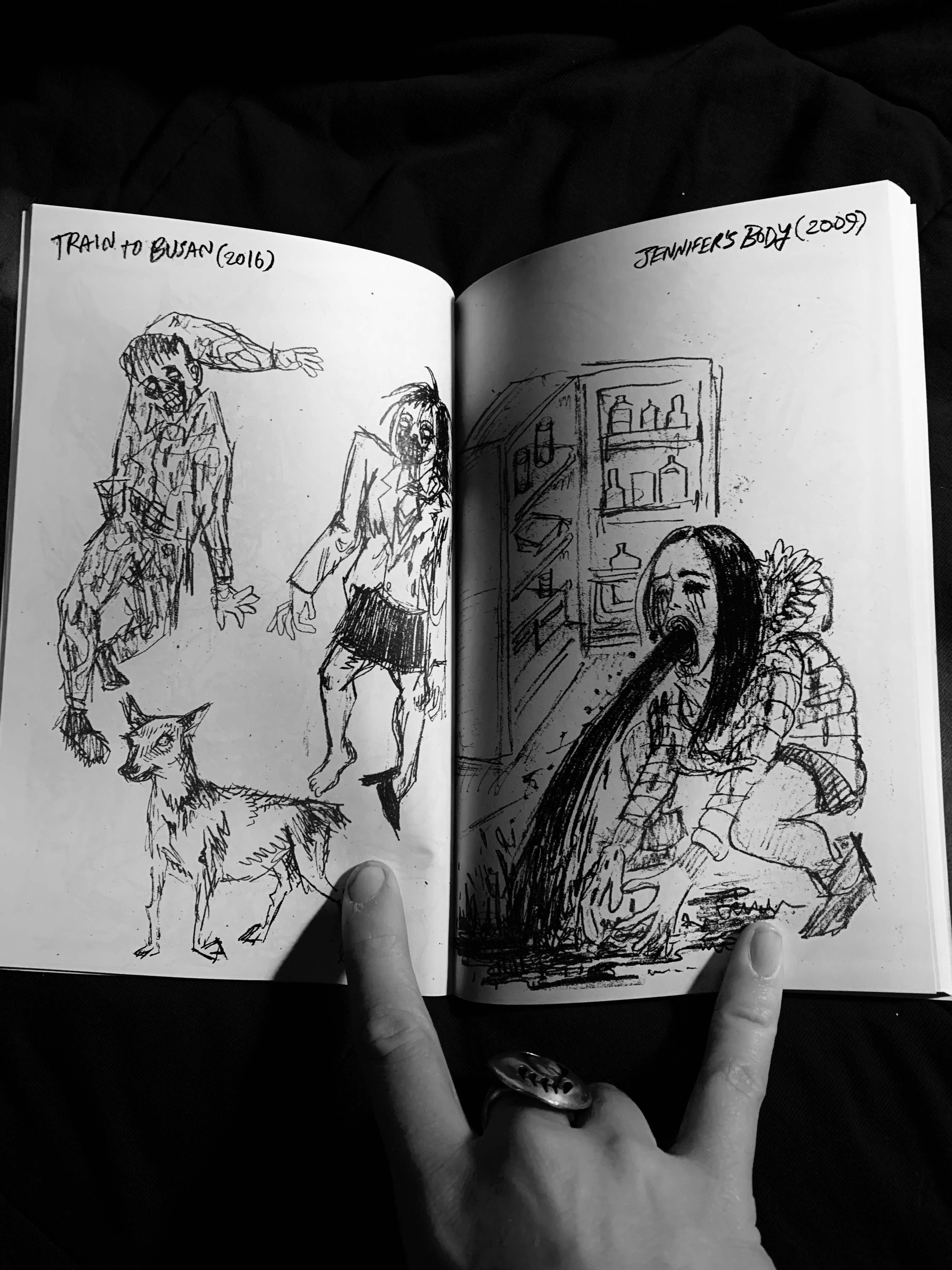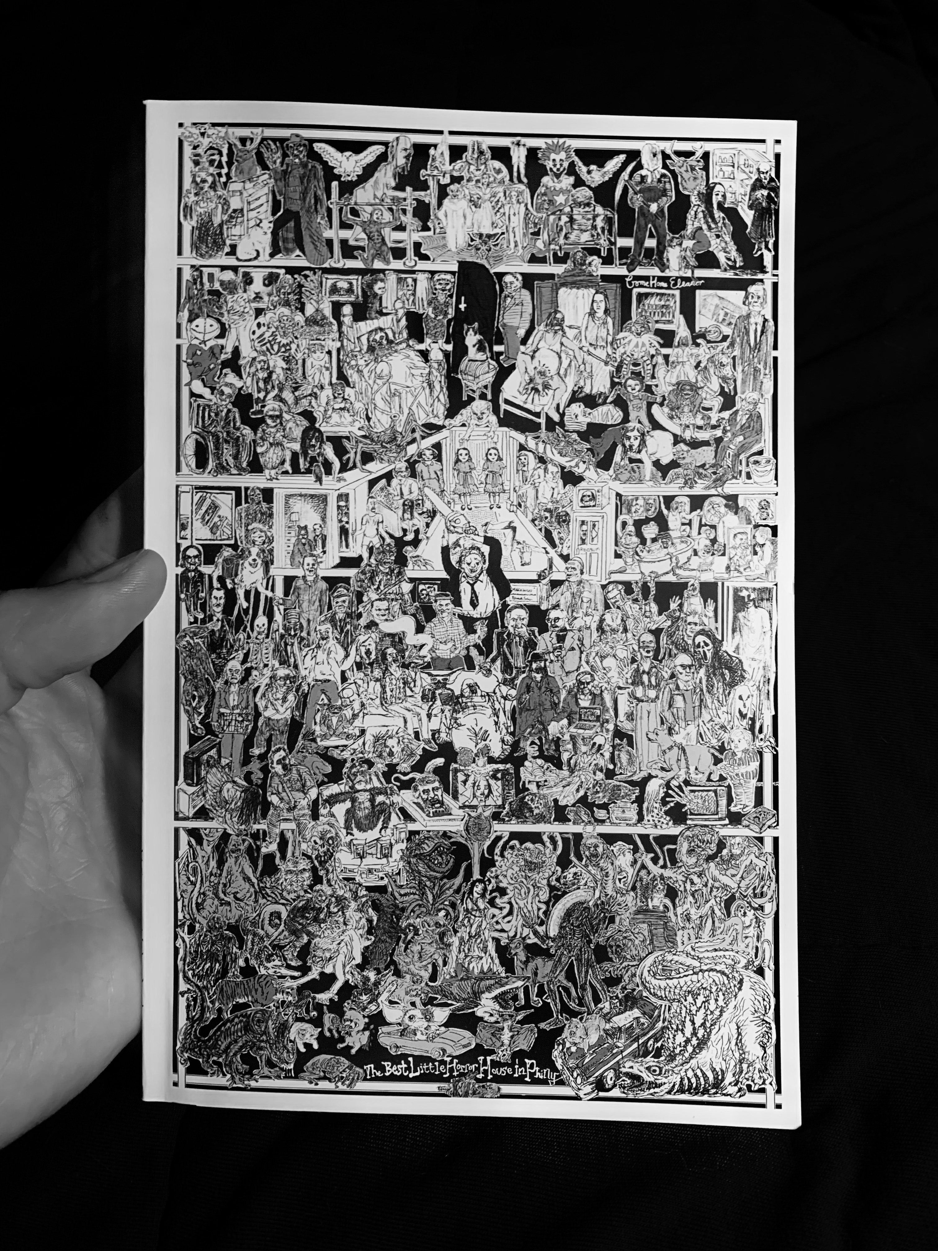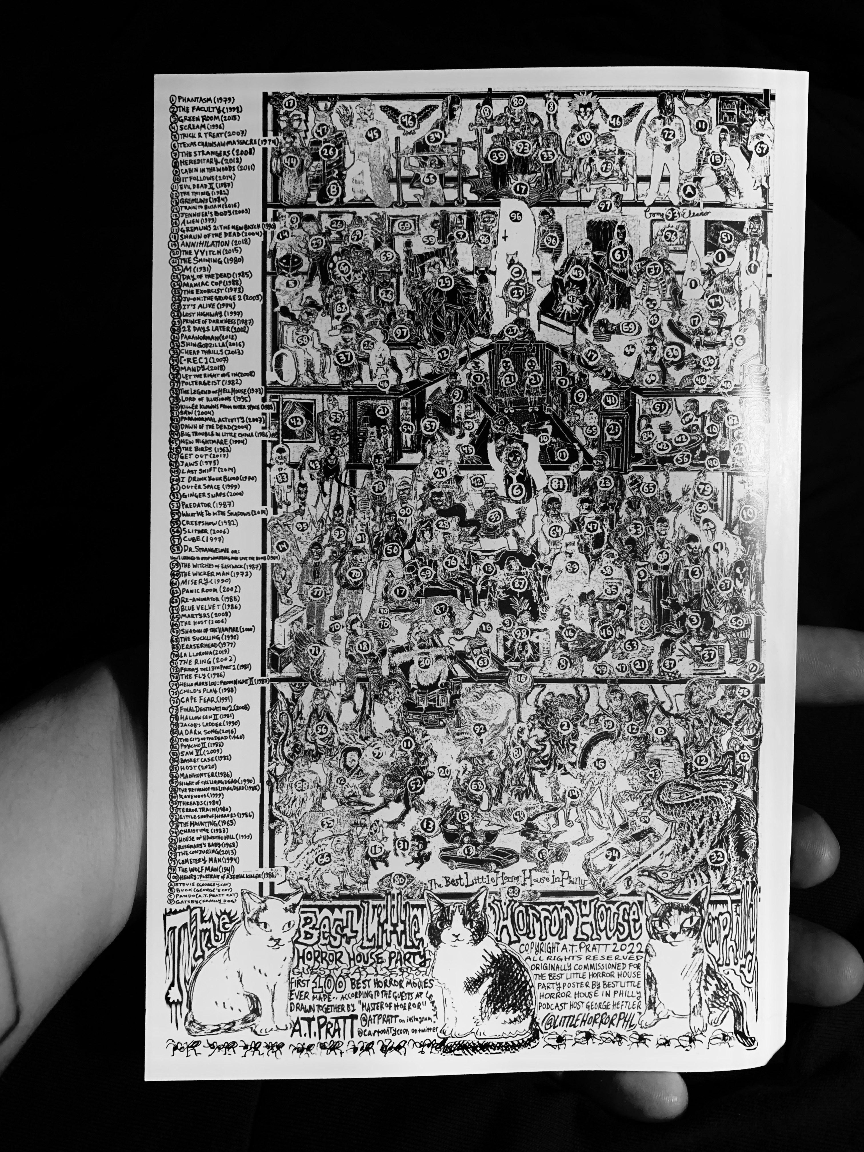100 interior pages recreating the book of my individual drawings for the poster celebrating The Best Little Horror House in Philly podcast's first 100 "Best Horror Movies of all time" (according to the guests at least).