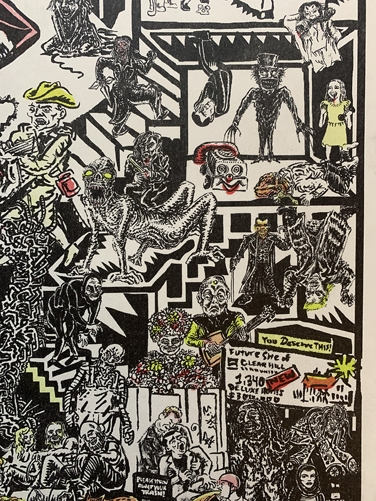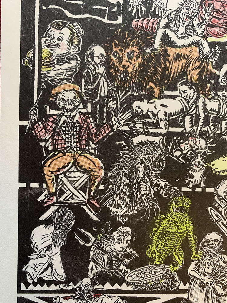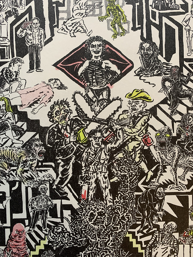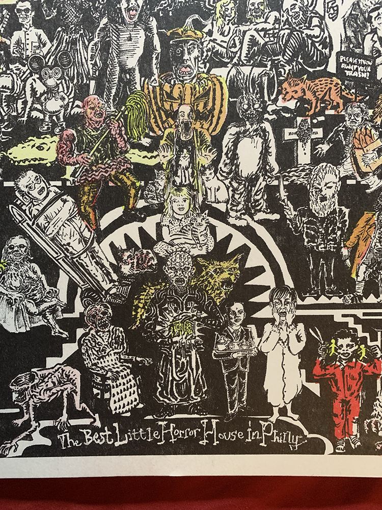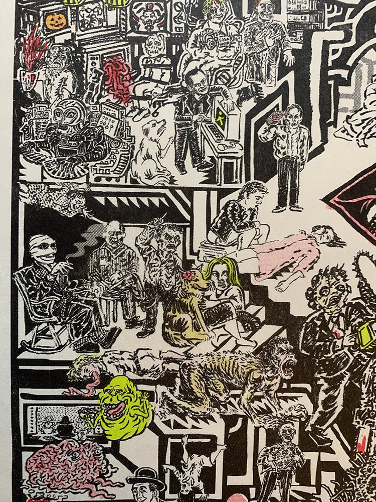 Second 100 picks for best horror movie of all time according to guests of The Best Little Horror House in Philly podcast hosted by George Heftler. 3 color 11x17" risograph print. Comes with key that tells you who's who, with numbers on each of the characters/objects that correspond to numbered list of the 100 movies.